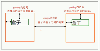 盒子内容与边框的距离是内边距(类似单元格的cellpadding)。